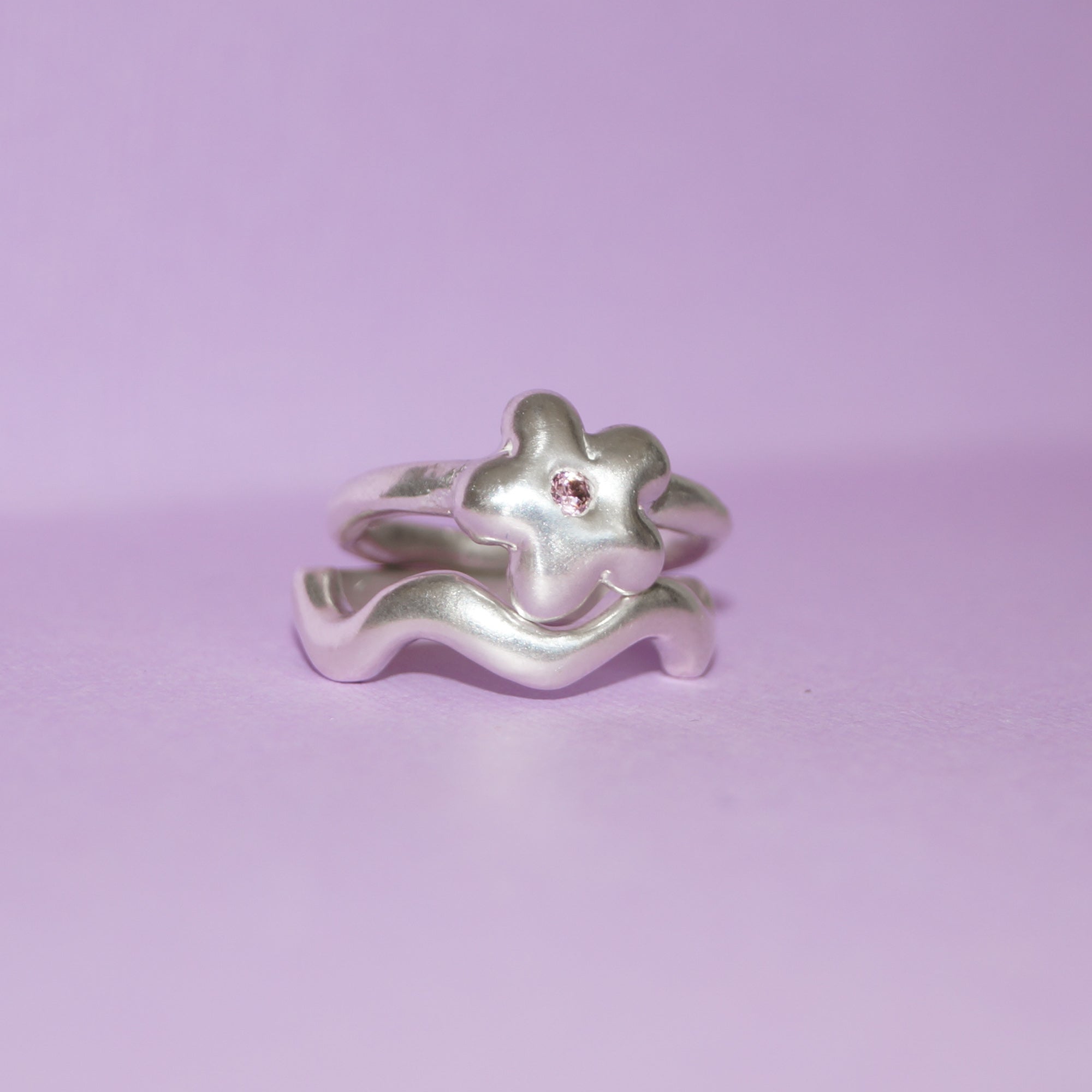 Puffy waves, simple & structural. It makes a statement on it's own, & works well stacked with other rings. We suggest our Daisy Ring, they were made for each other.