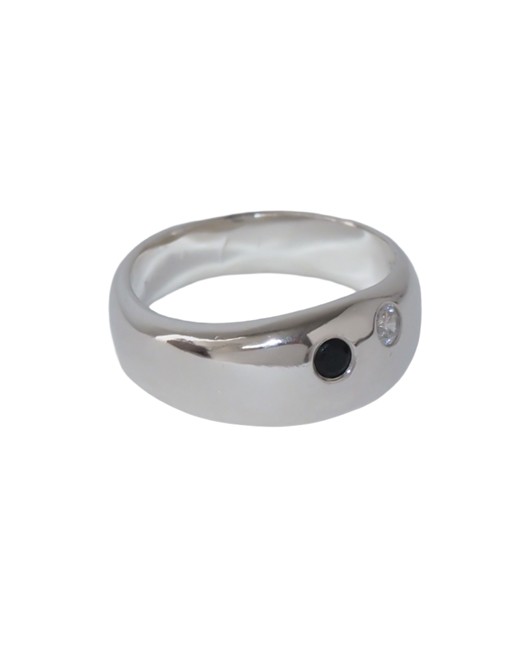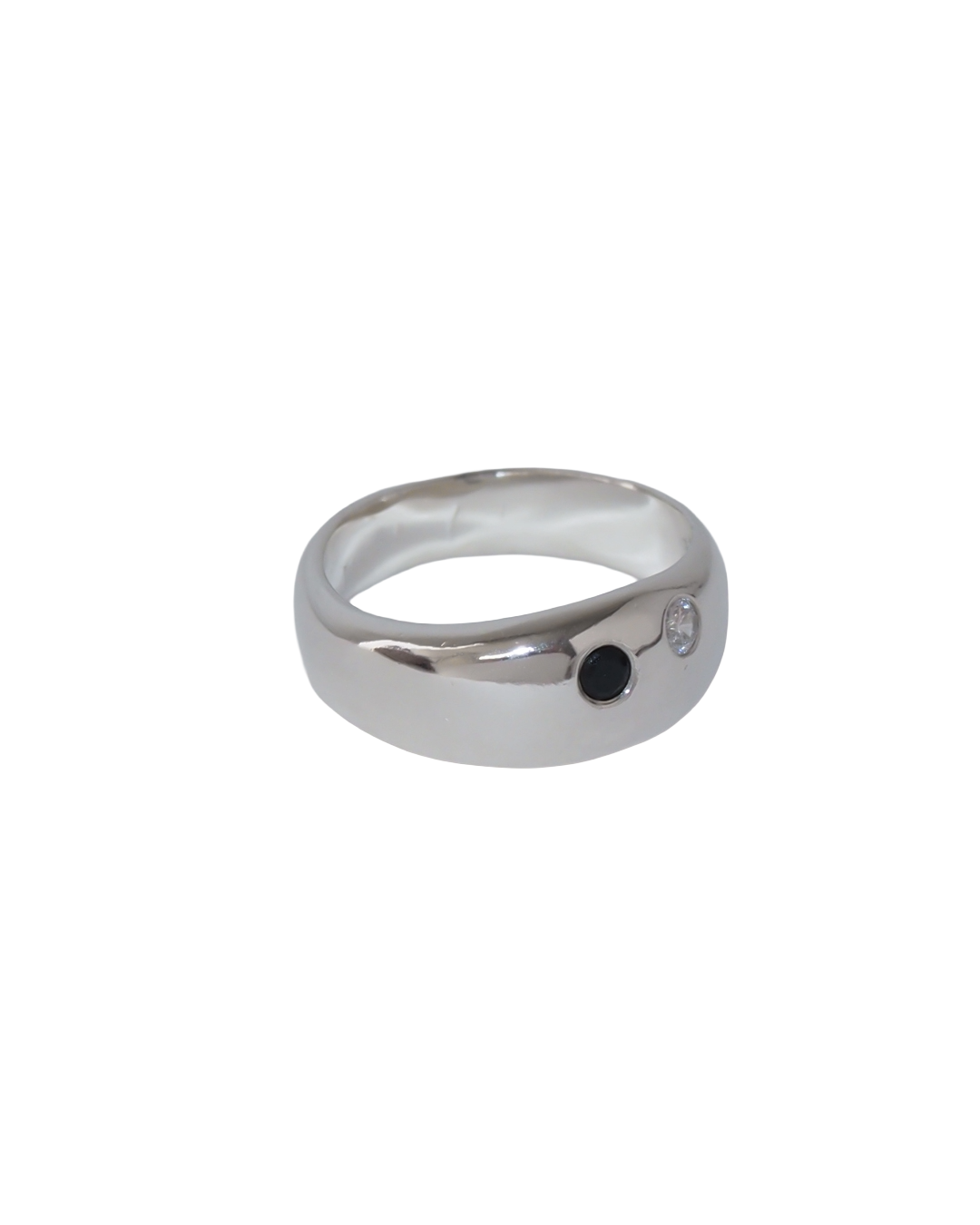 A subtle elevation to our bestselling Blob ring. It features black spinel & clear CZ gemstones