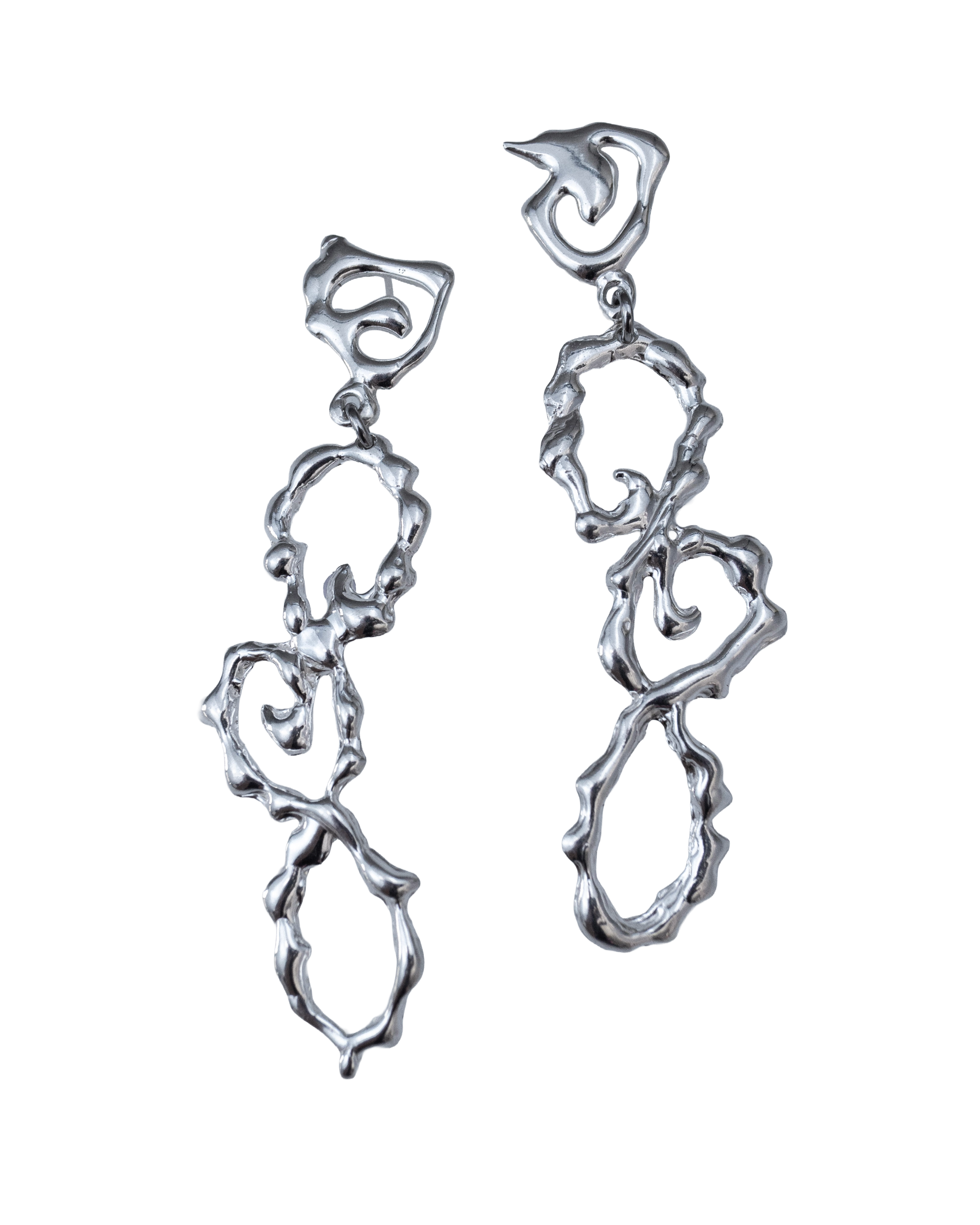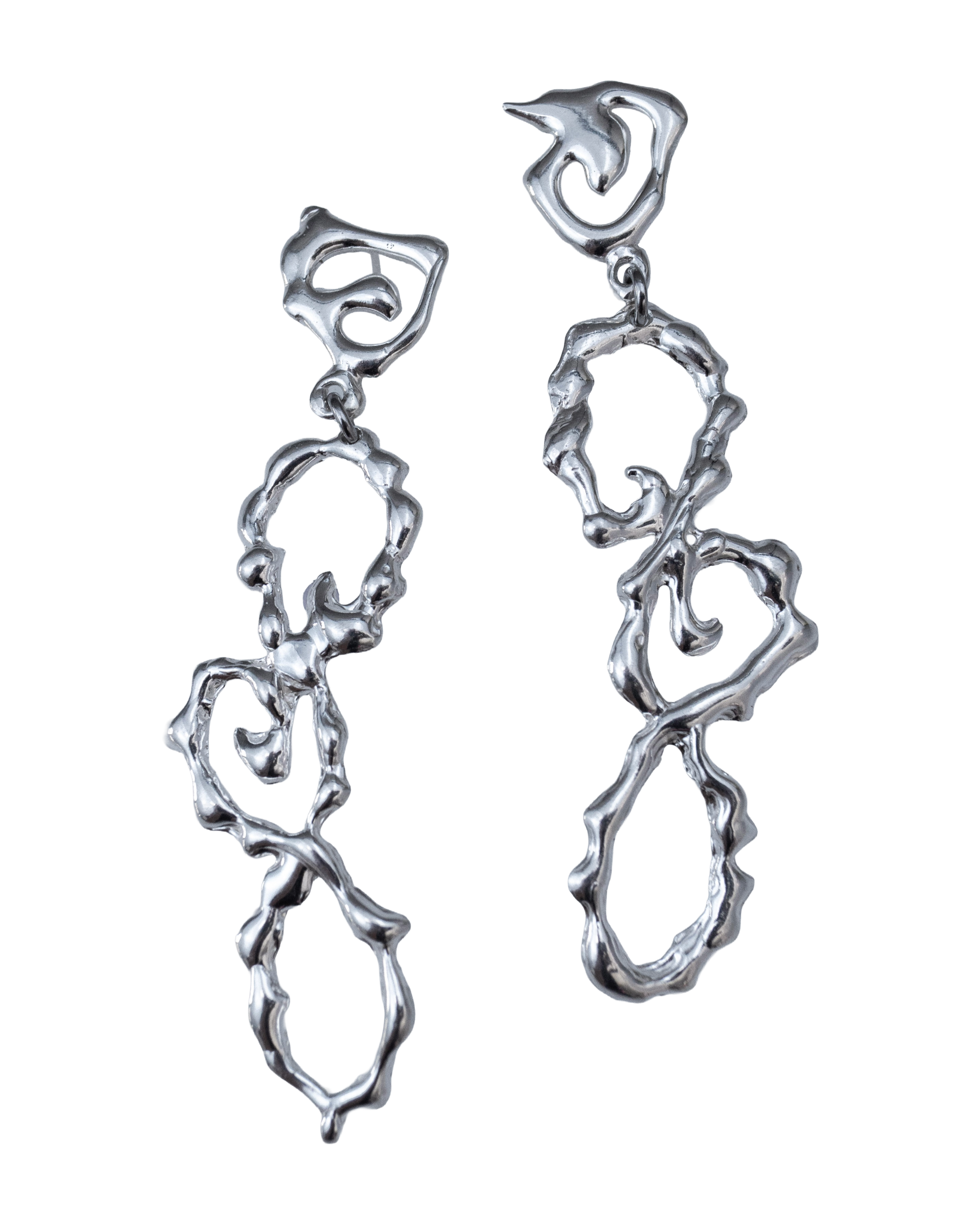 Dreamlike puffy silver clouds captured in mid movement, dangle from whimsical swirly studs. The Fluid Wavy earrings move with you; they are lightweight while making a big statement. A sculptural, free form design that is an exploration in flowing metal forms.