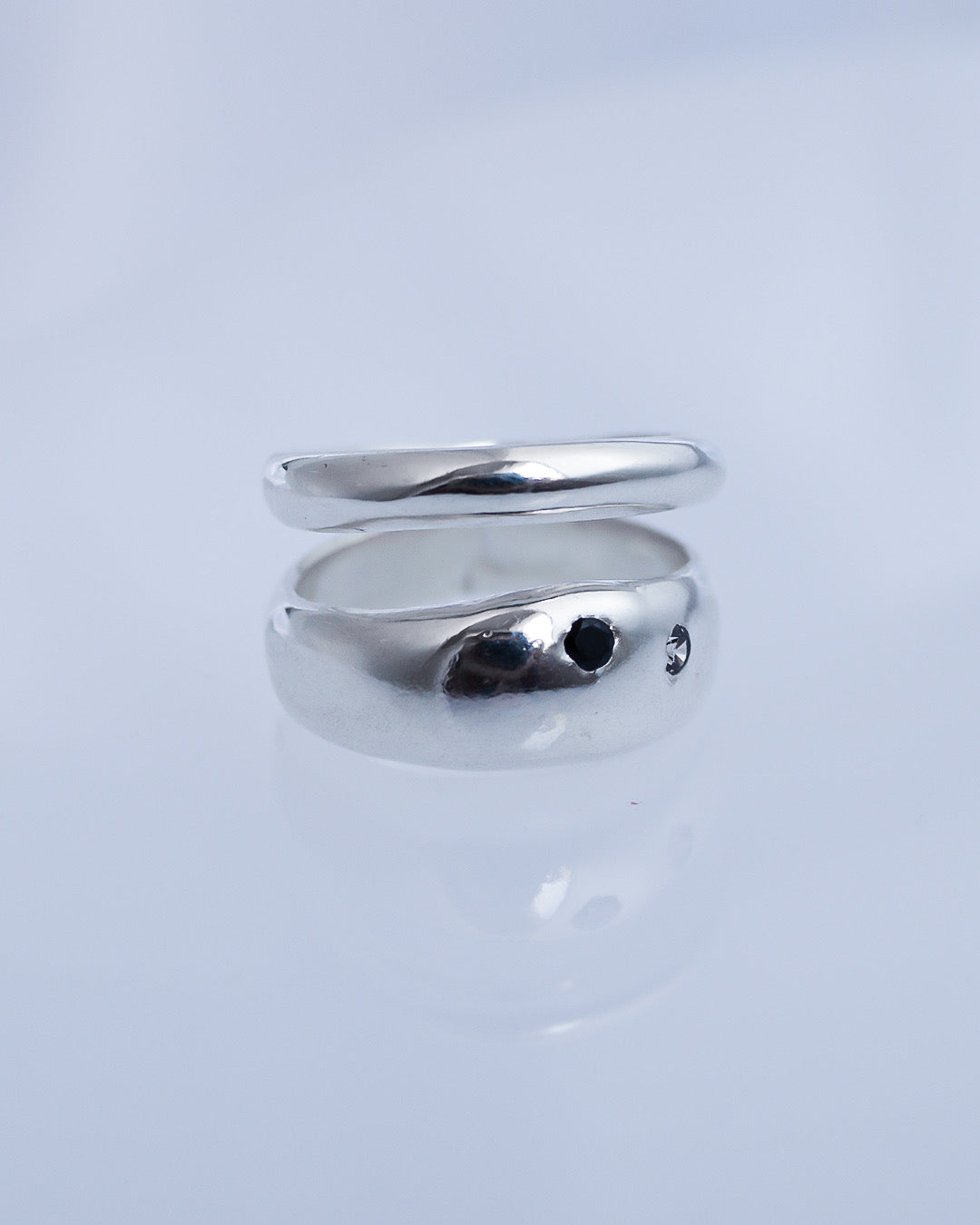Clean, crisp & classic. A subtle elevation to our bestselling Double Blob ring. It features an open back for maximum comfort, & black spinel & clear CZ gemstones