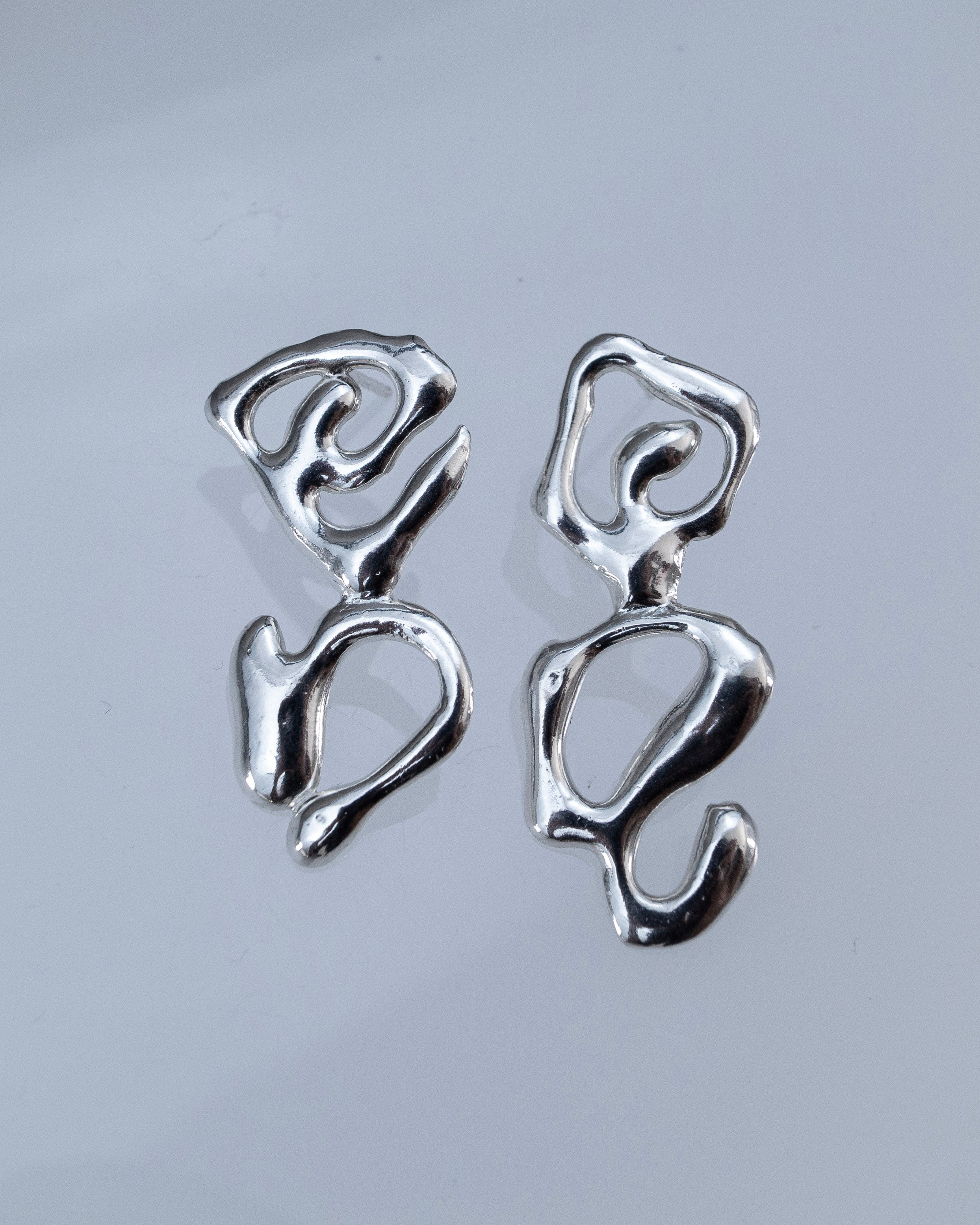 Organic, asymmetrical stud earrings sculpted in 925 sterling silver. Made as free form shapes that mirror the flow of molten metal
